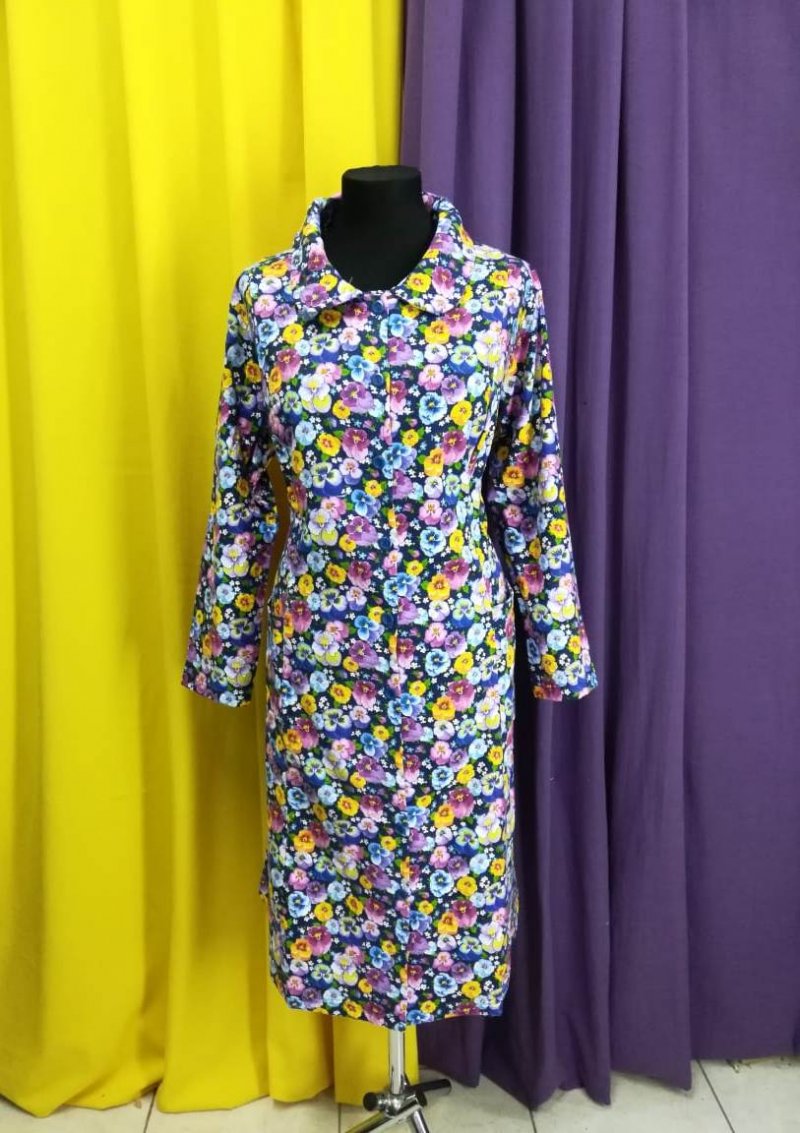 Фланелевый халат на пуговицах с длинным рукавом