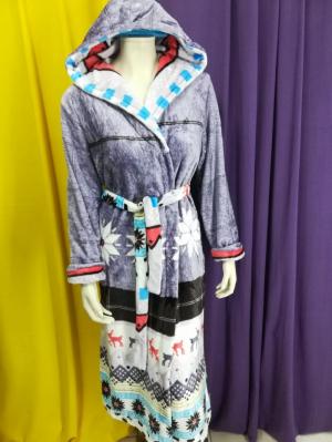 Теплый длинный халат на запах с капюшоном. Длинный рукав .