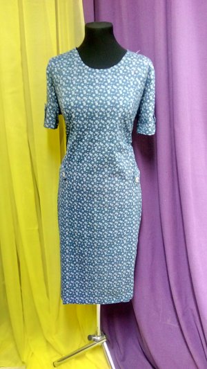 Прямое платье из хлопкового трикотажа с коротким рукавом