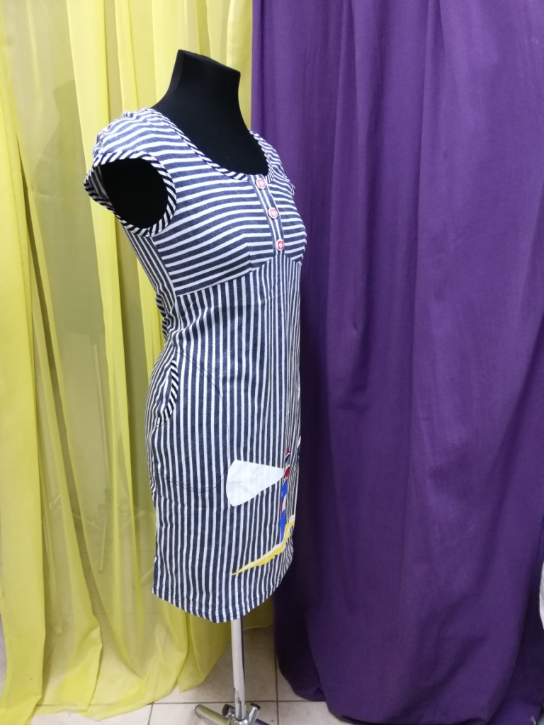 Платье-Туника из хлопкового трикотажа. Открытый полурукав позволяет руке дышать и прячет плечо от солнца. Модель скроена с подрезом под грудью.Это скрывает объем талии, стройнит и делает модель очень комфортной. Туника хороша для пляжа, дома, поездок на природу.